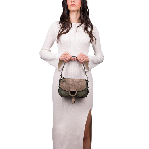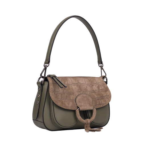 BORSE CROMIA DONNA LADIES MINI BAG ERMIONE A MANO E TRACOLLA IN PELLE OLIVA 1406152