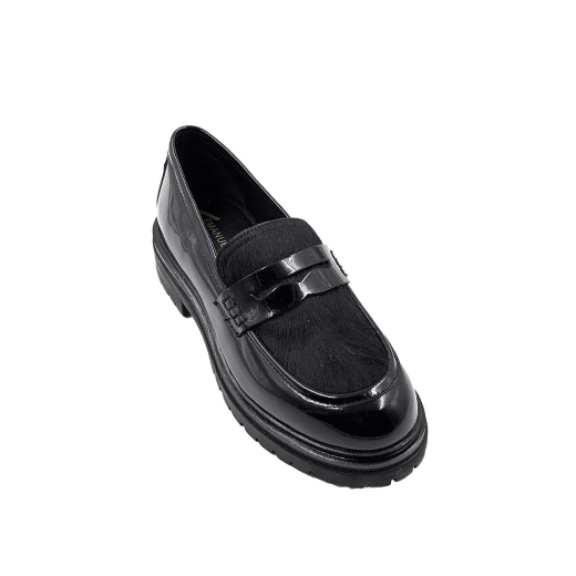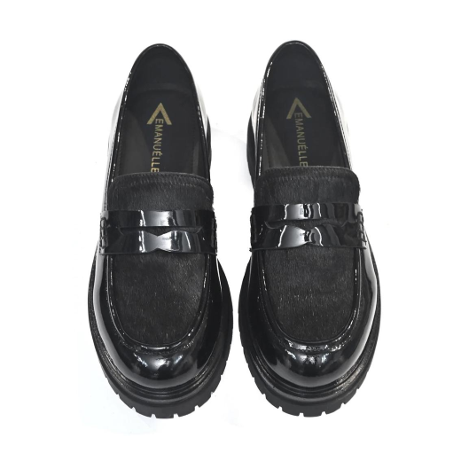 SCARPE DONNA EMANUÉLLE VEE MOCASSINO INDIRA IN PELLE EFFETTO VERNICE BLACK 452M80810PACB